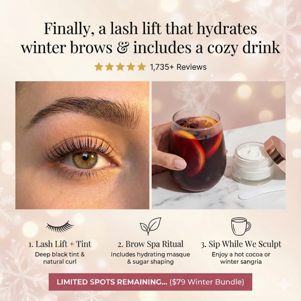 Winter is here, and between the dry air and the holiday rush, your skin and brows could use a little extra love right now. You deserve a moment to pause, get cozy, and reset.